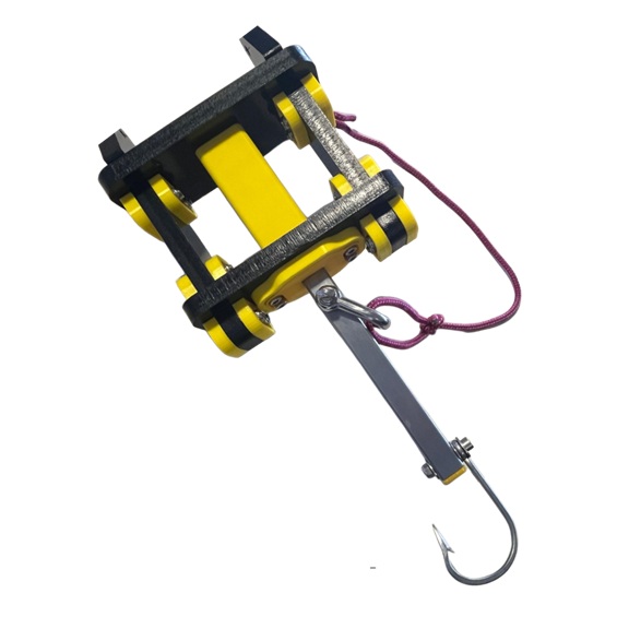 Sistema rápido de enganche de un mosquetón que permite recuperar objetos submarinos de forma sencilla y eficaz. |